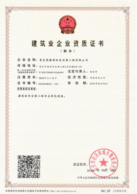 重慶思敏特機電安裝工程有限公司地址:重慶市南岸區(qū)雙峰山路2號 聯(lián)系電話:023-62510213